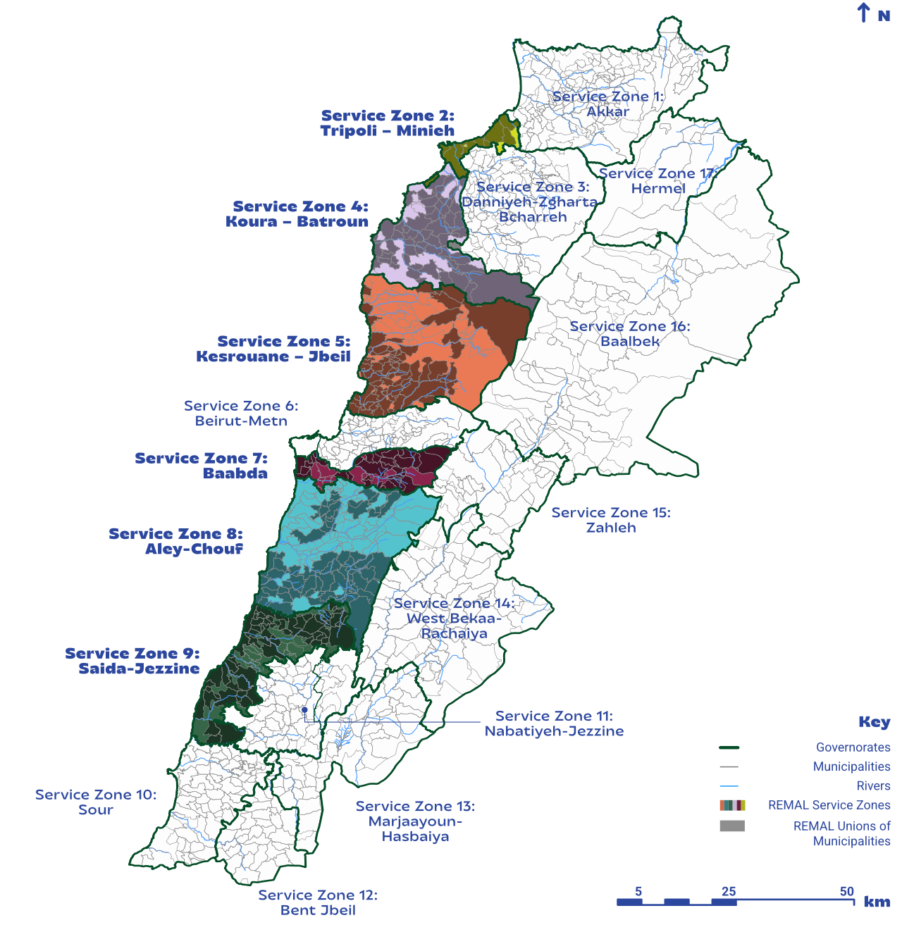 The REMAL project supports the Ministry of Environment in advancing Lebanon’s decentralisation efforts by developing Solid Waste Management Master Plans for coastal Service Zones and assisting in the formulation of actionable, sustainable, and financially viable operational plans for waste management services.